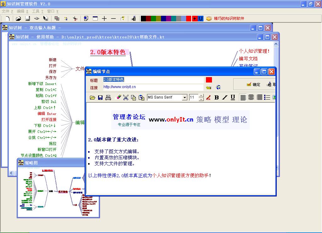 知识树软件是一款绿色软件,可以用于写作笔记、导航型html、会议记录、文件索引、教学演示、制作帮助等,非常方便,只有300K大小,免安装解开直接运行