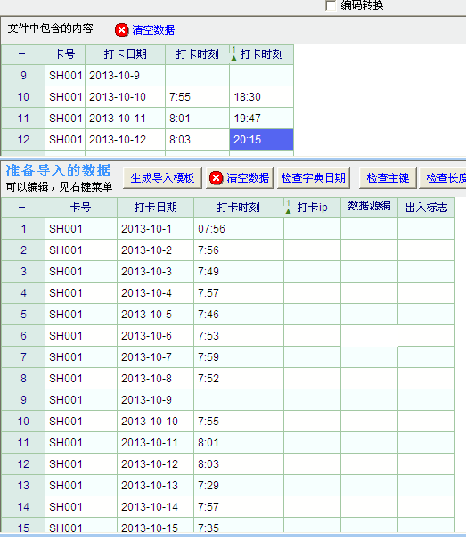考勤数据导入只显示上班打卡时间,下班打卡时间不知怎么回事,就是不显示,不知哪里出了问题
