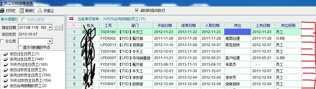 请官方在启动提醒的模块中,各项与员工有关的,增加员工岗位、部门、联系方式,便于直接导出,谢谢!!!!!!!!