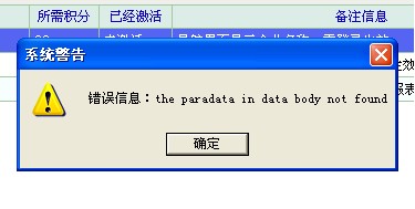 在激活更多功能时输及用户名称和登录密码(这是在http://www.onlyit.cn注册的用户名和密码)提示错误信息:the paradata in data body not found