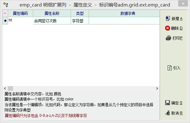编码:ht     名称:合同签订次数   类型:字符型      //随手打的,可以自己设