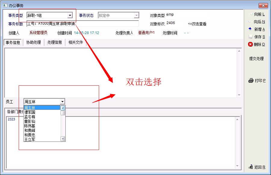 1.办公事务类型-扩展属性-字典型无法双击选择。 事务类型 无法双击选择。