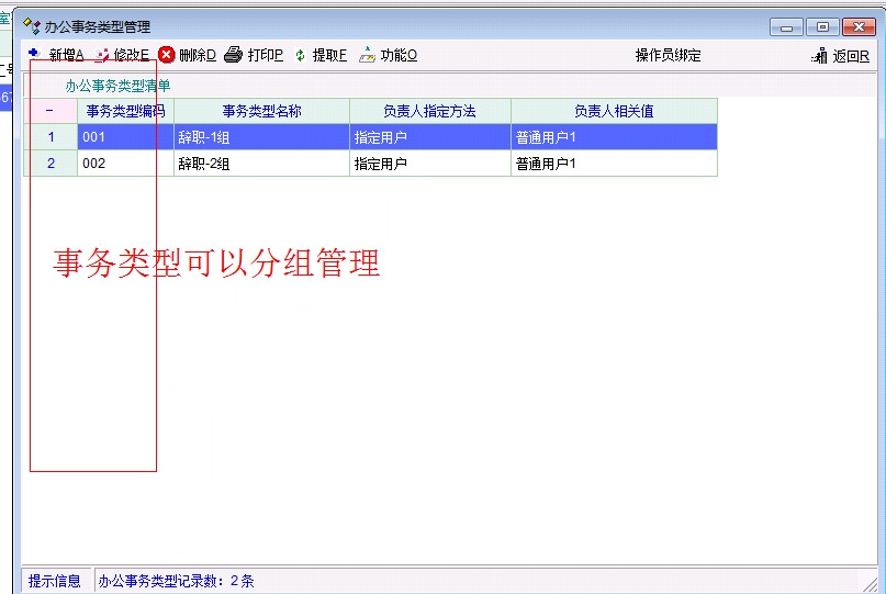 4,当后期办公类型比较多时,操作员流动比较大。需要经常修改类型里修改操作员。现在还比较麻烦需要一个个去查看修改。