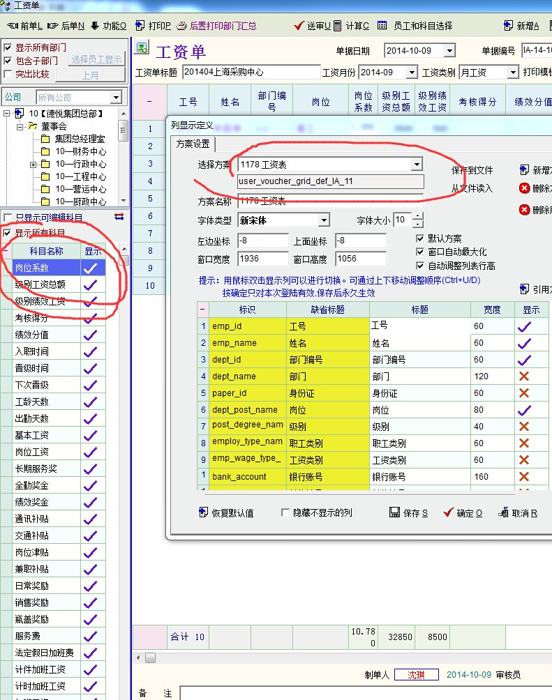 关于工资单科目显示的问题,能否可以设置为自行定制方案,避免每次都要重新选择。
