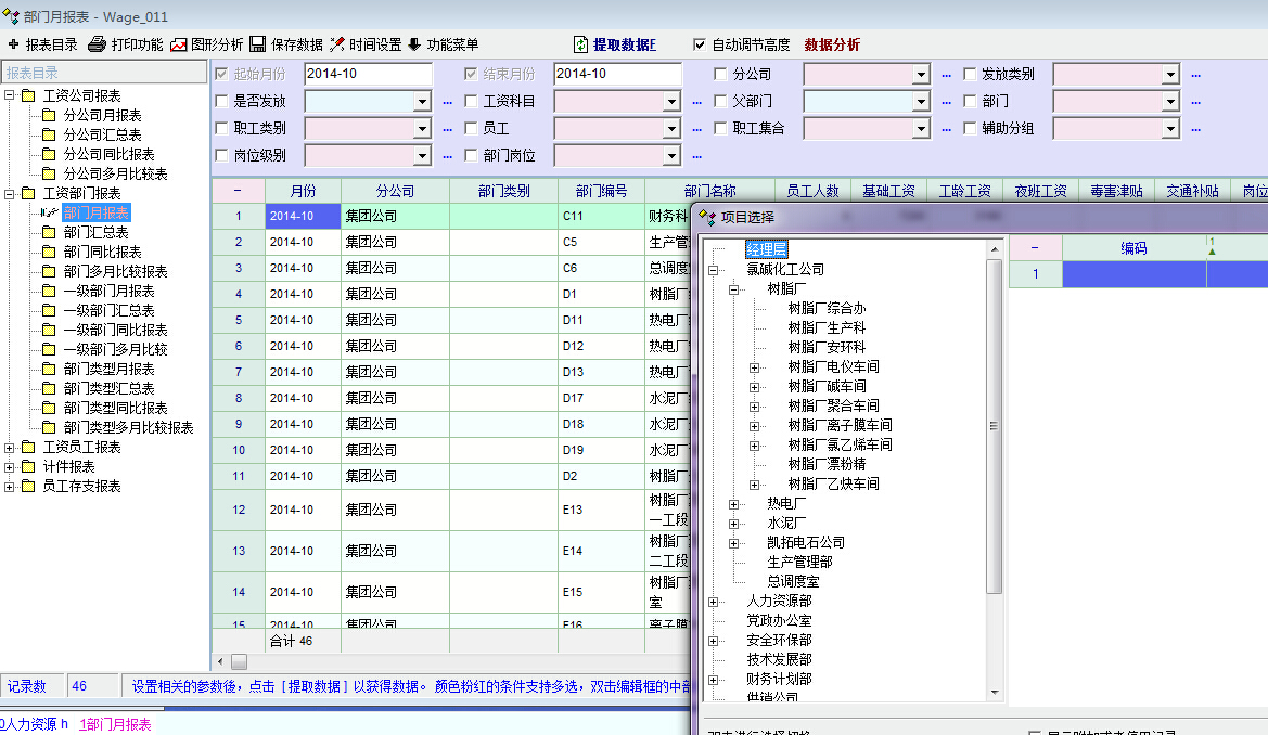 1.工资报表的汇总中的选项“父部门”无法进行多项选择,出现的数据只能是单个部门;