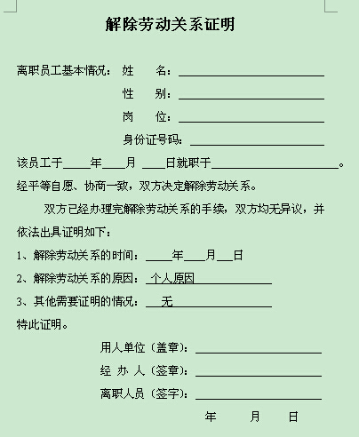 求助_关于“离职员工解除劳动合同关系证明”打印的问题_人力资产