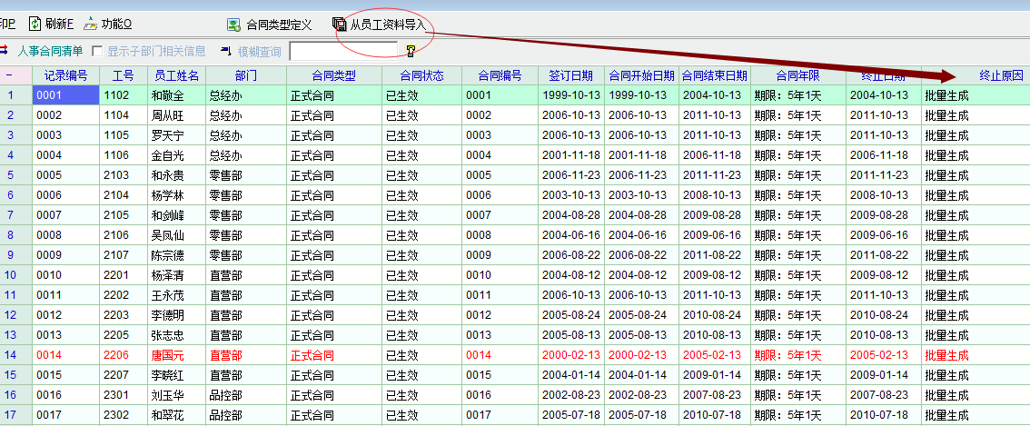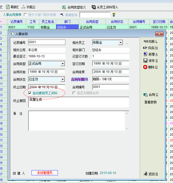 人事合同是与员工资料相关联的,所以只要在人事合同里面录入了合同信息,在员工资料里面也同时能看到这一块的信息。因此我建议职称管理、工作经历、学习经历也应该与员工资料相关联,以减少重复录入信息的次数,降低工作量