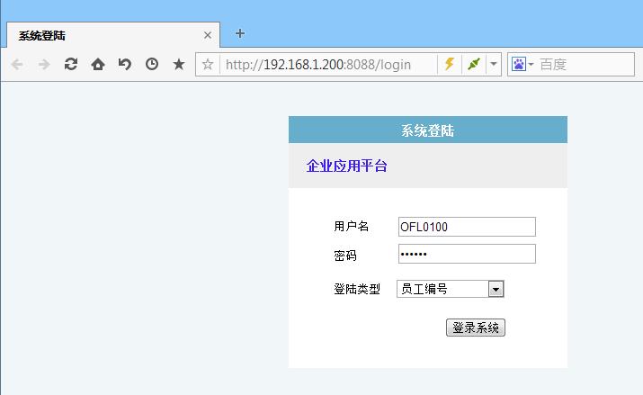 用浏览器访问的时候,使用员工编号+密码 登录类型选择“员工编号”的时候可以正常登录