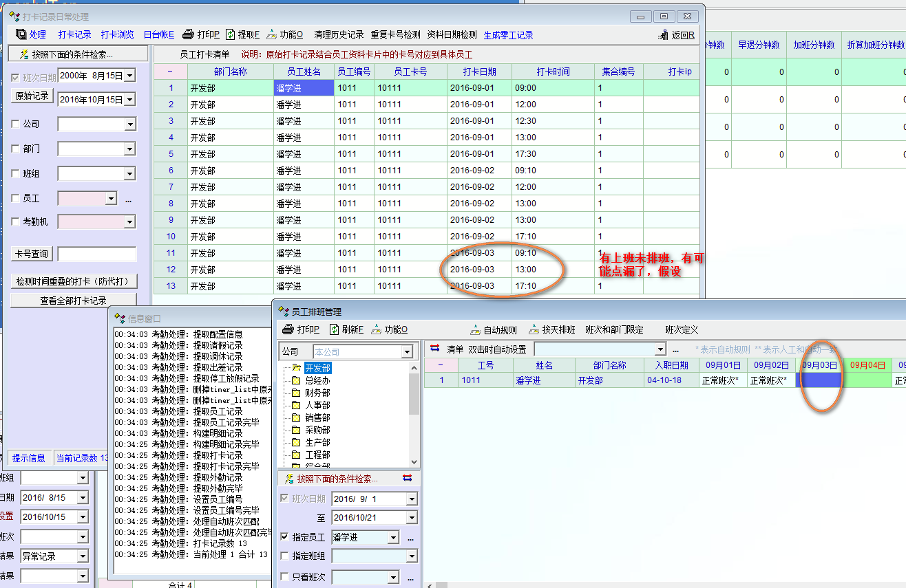 没有排班但有打卡的显示未知班次或者未排班,这样方便排错。