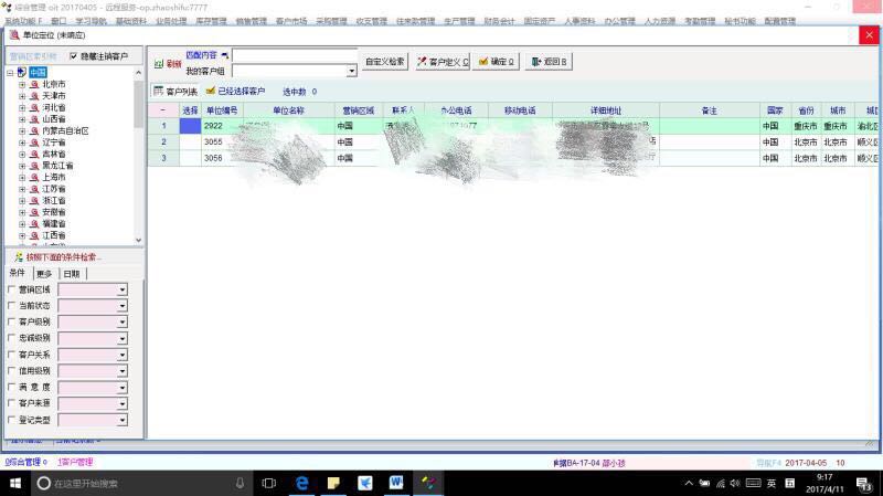 软件师说可能是营销区域太多,所以会出现这种状况,于是他告诉我们不要用这一块检索,用下图区域检索客户资料