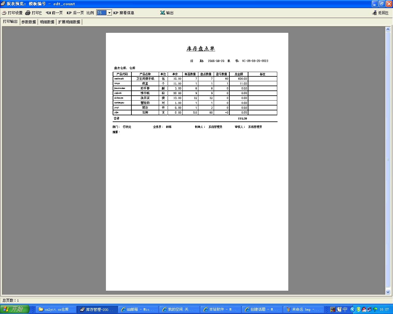 我上传一个盘点单的打印模板文件,你用导入打印模板模块导入后再打印一下。导入打印模板模块在主功能选项右边的小图标菜单下。