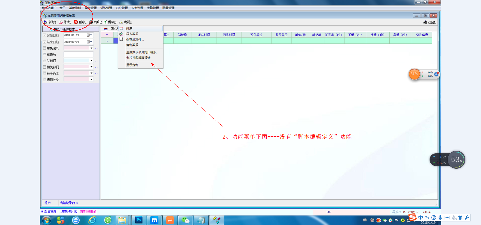 我想编辑车辆费用清单里面功能,可是功能里面没有脚本定制