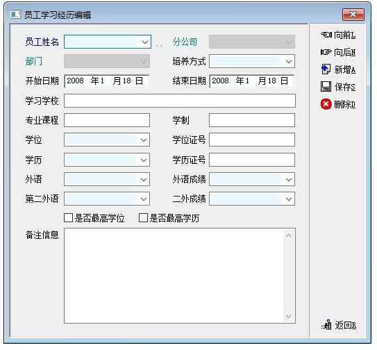 版本下次升级建议在学历经历、社会关系、人事合同、奖惩记录、员工技能中增加新增上传文件项目