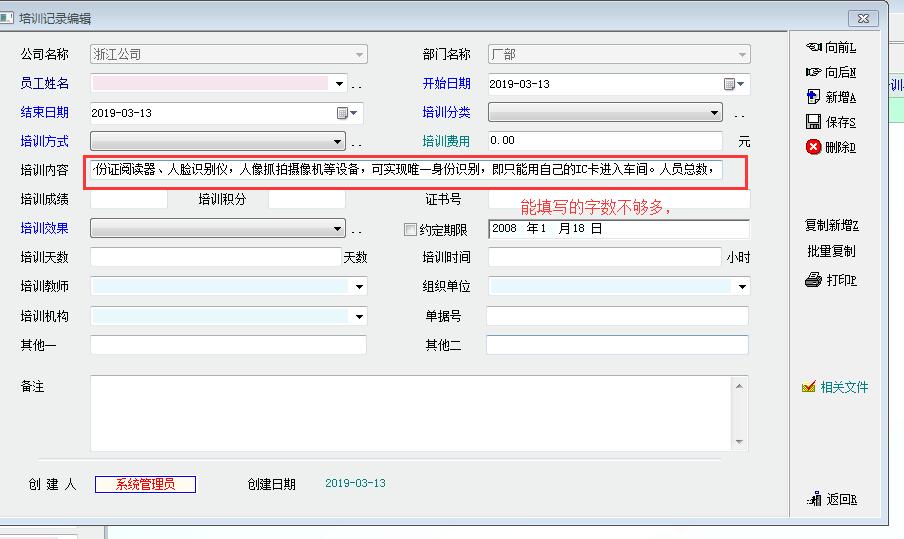 1.在新增员工培训记录时,点击“保存”时,没有提示直接生成数据,如果不小心按了二次保存,会生成二条同样记录。