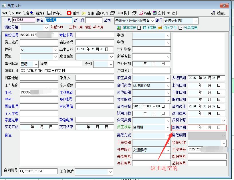 如题:员工基础资料批量修改后,系统自动把在职员工加上离职时间,且时间是批量修改的当天。但双击该条数据查看时,相应的字段又没有数据。