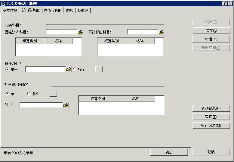另外,建议在资产卡片的“财务信息”里的费用分配里增加使用部门相关的折旧科目核算项目信息,以适应某些折旧科目按照部门或者车间进行辅助核算的需要。