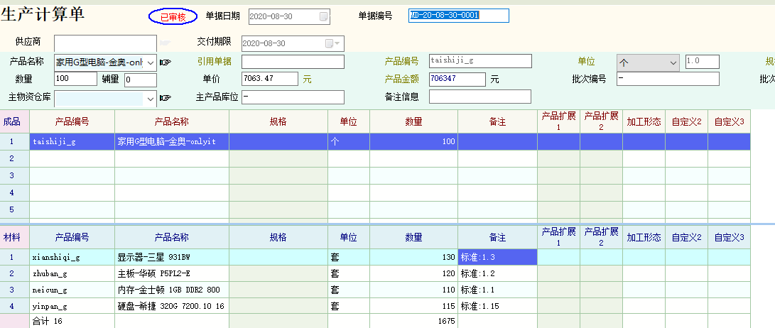 求助_在生产计算单里,能否把产品组成里的更多字段,及自定义字段带出来,比如:损耗率、加_产供销