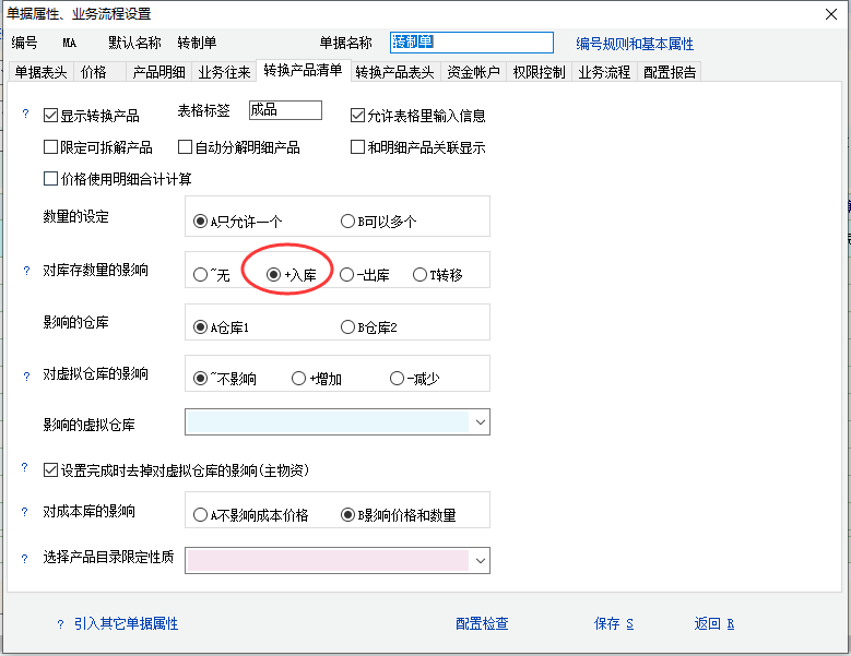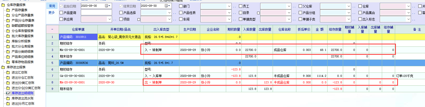 一、对于库存管理,成品入库,数量增加;原料出库,数量减少;这个可以在转制单业务规则属性设置,最终在仓库报表中,也确实设置,达到了要求;如下三图