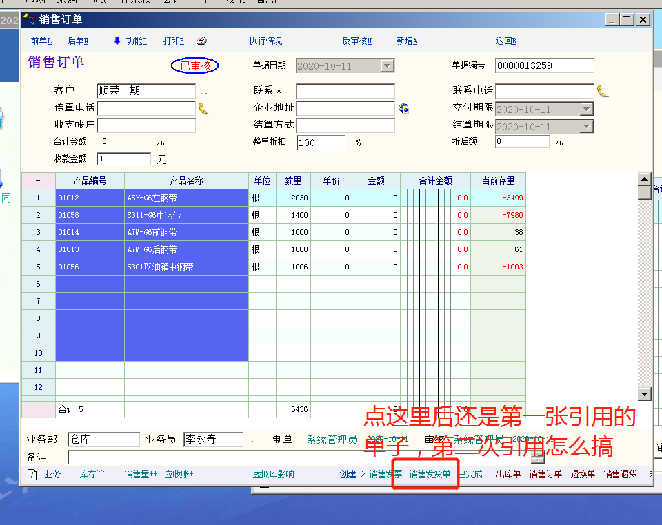 发货单第二次引用销售订单,怎么操作才可以?