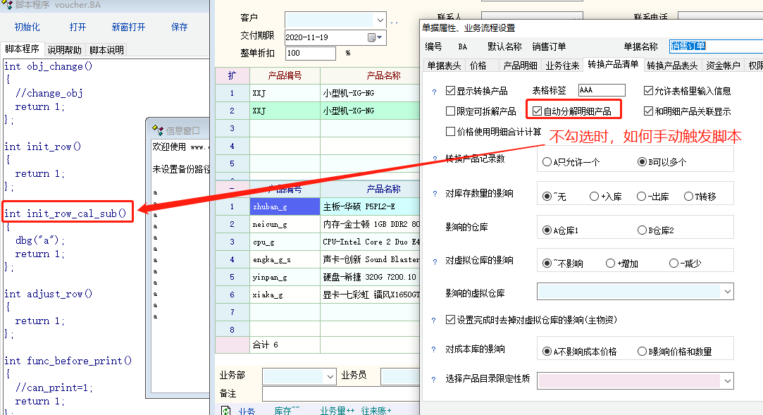 物资单据脚本增加了init_row_cal_sub函数,在计算拆解组成物料的时候执行,针对每条明细物料执行(感谢summer)