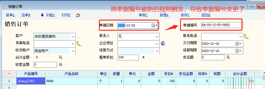 一修改日期,此时单据编号也会自动变了,变变成另外一个号码比如:BA-20-12-02-0002