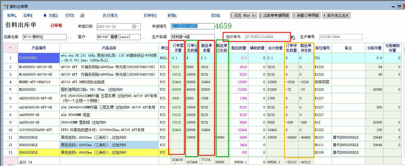 这是我的套料出库单做的上级的上级单据和上级单据数量及已引用数量和剩余引用数量
