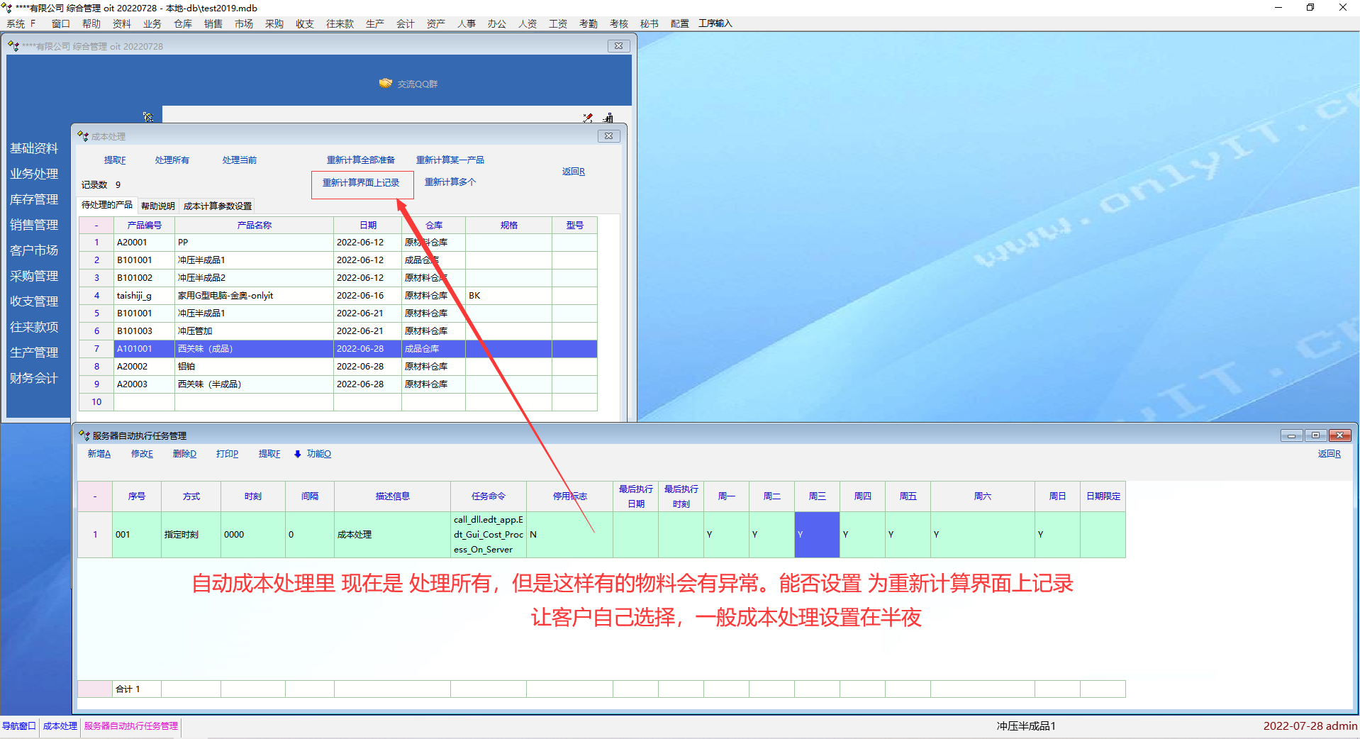 改进后的处理:如果遇到成本处理异常的记录,系统自动进行重置该产品,然后再做一次成本处理。