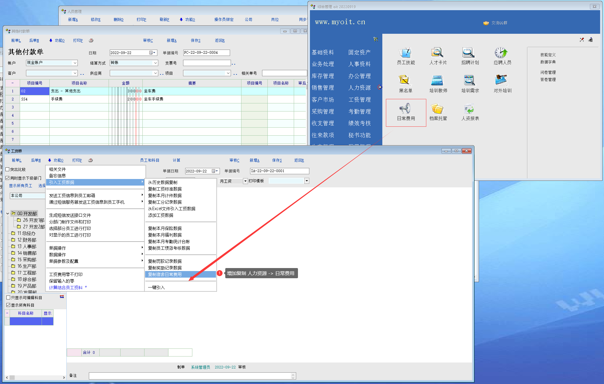 工资单 增加引用 人力资源 -> 日常费用数据_产供销