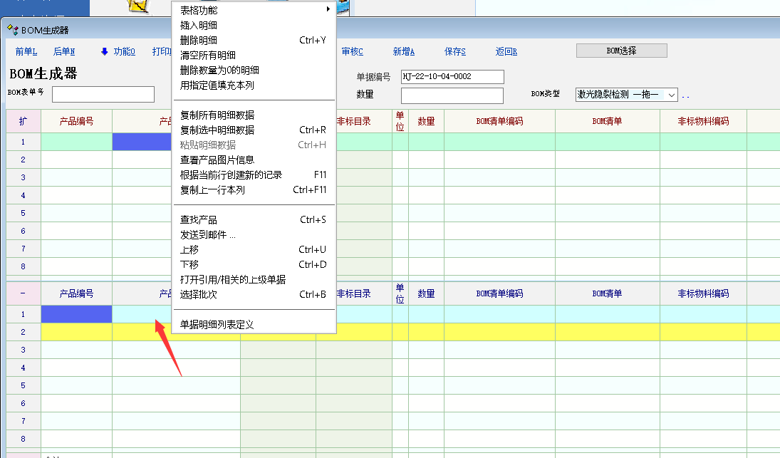 如下图, 主表格右键菜单, 比明细表格右键菜单少了 清空所有明细