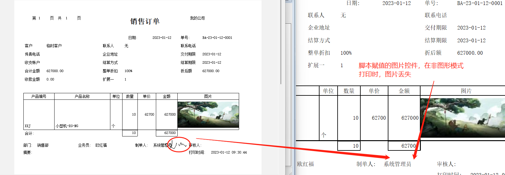 1.2 图片类型控件,当用脚本去赋值时,只有在  “有图片时按照图形模式打印” 选中时,才可正常打印出来