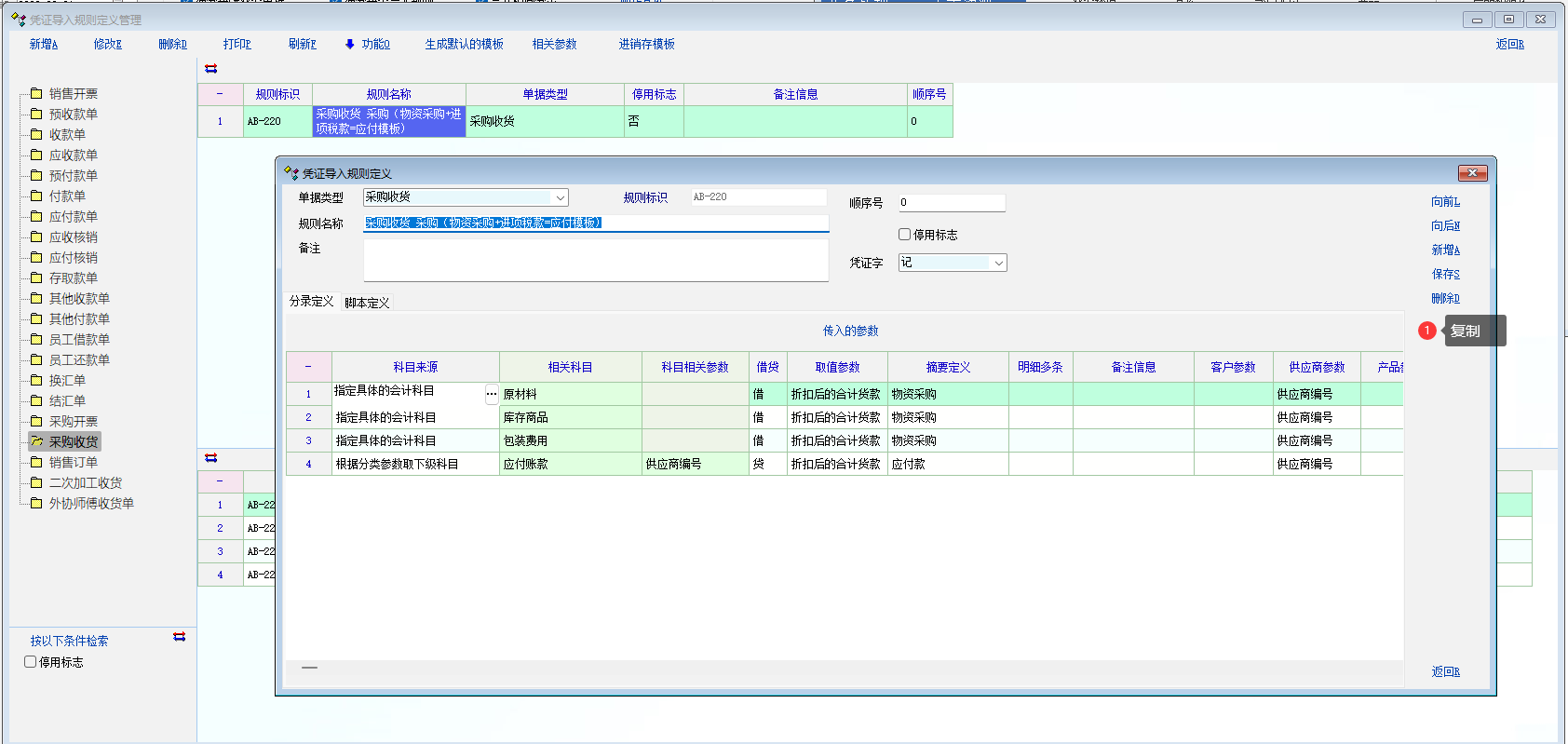 如图:当有相似的模板时, 有复制功能可提高创建导入模板记录的速度。