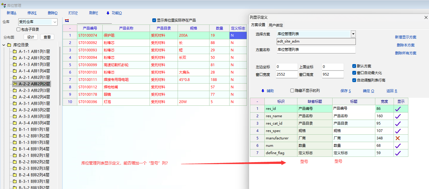 推荐_库位管理列表显示定义增加“型号”列_产供销