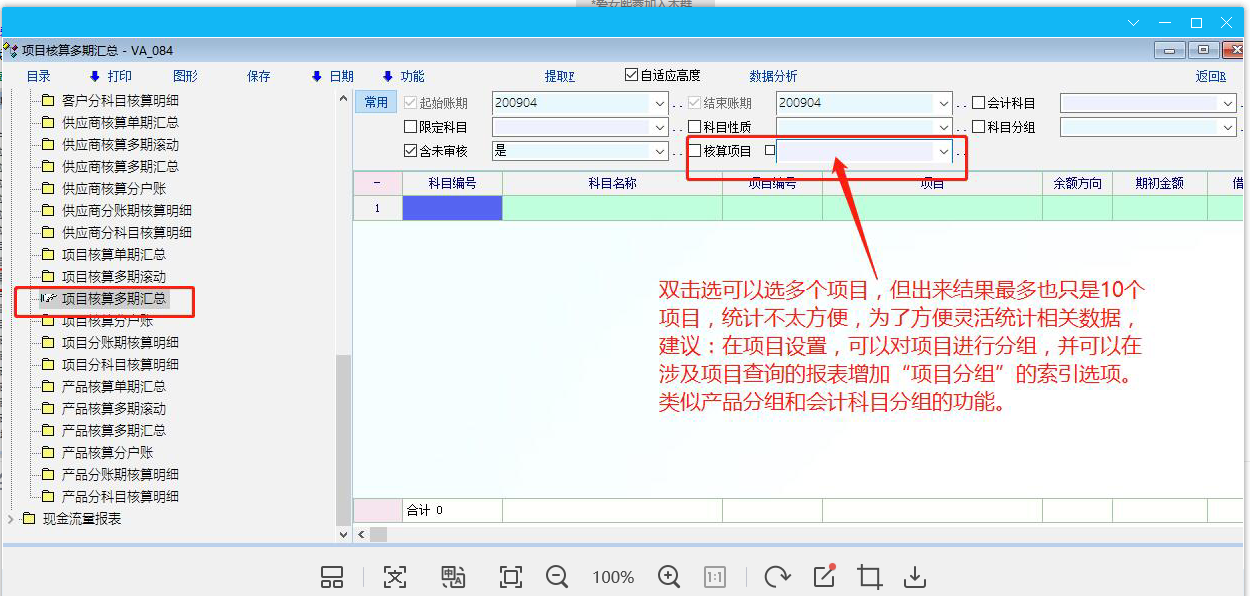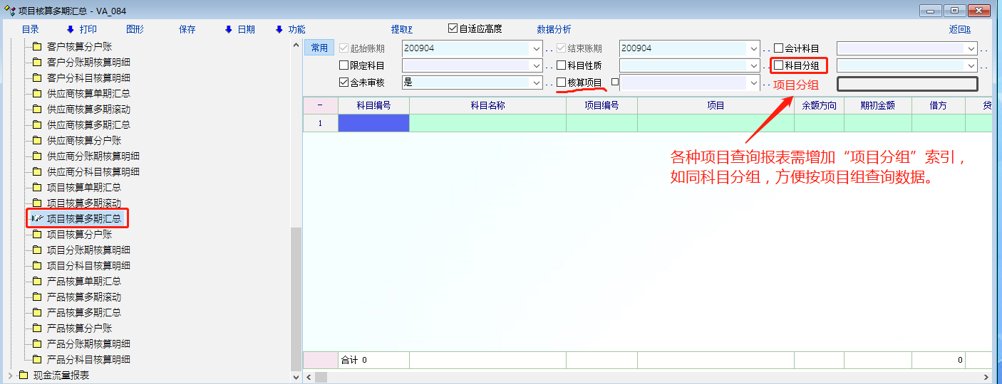 建议在项目设置中增加分组功能,类似会计科目、产品物资一样,这样可以方便在各种报表查询,可以按特定的项目组合查询、统计数据,包括物资单据报表的数量、金额、会计凭证报表的金额乱等。