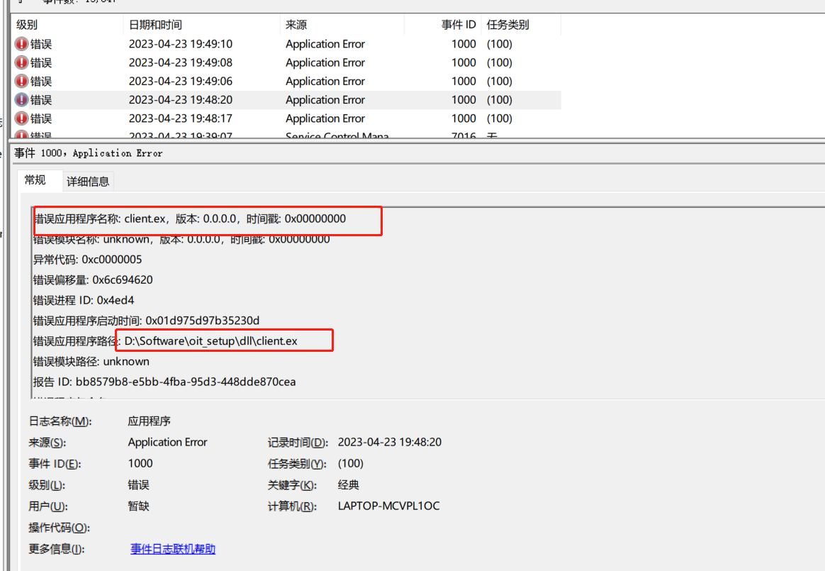 错误应用程序路径: D:\Software\oit_setup\dll\client.ex