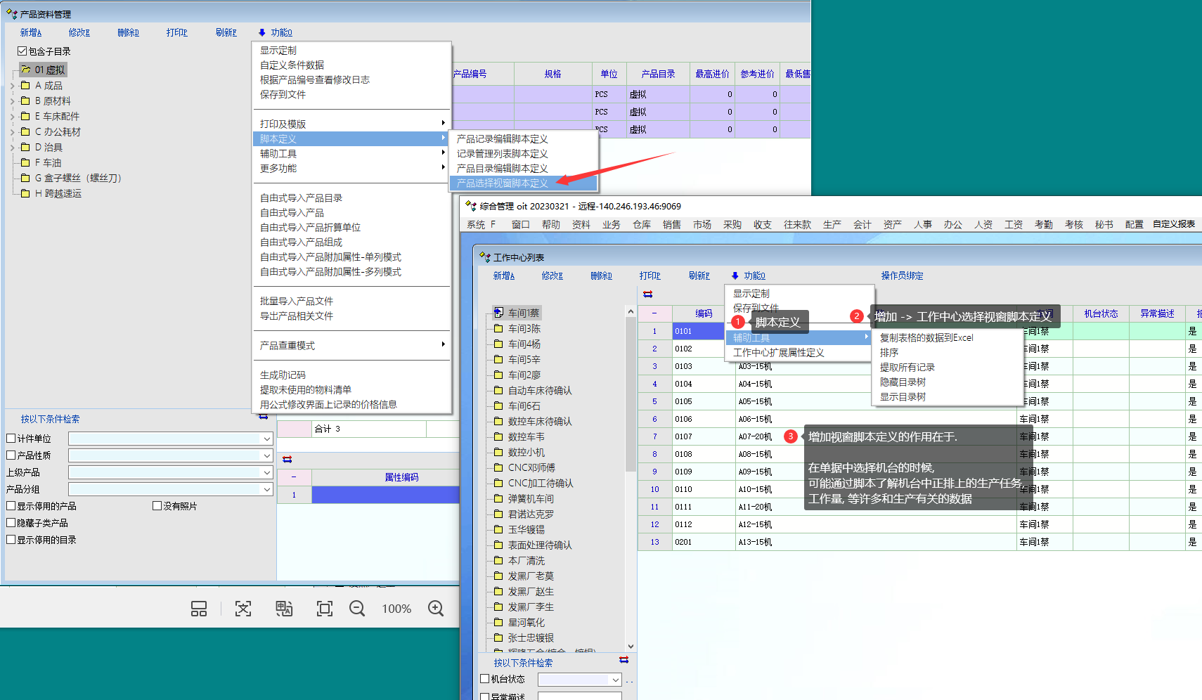 建议: 工作中心 增加 视窗选择脚本定义 (如同 产品资料 中的 选择产品视窗脚本)