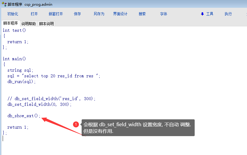 测试代码: db_show_ext, 没有根据设置的宽度显示.