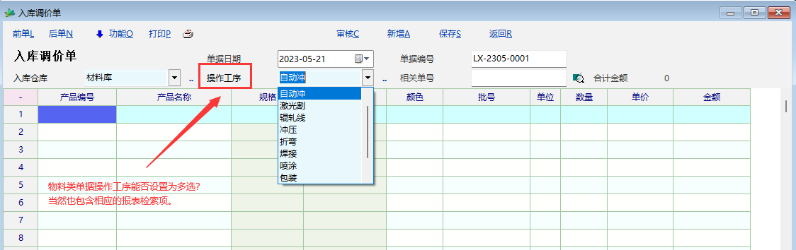如题,物资类单据表头“操作工序”建议设置为可多选。
