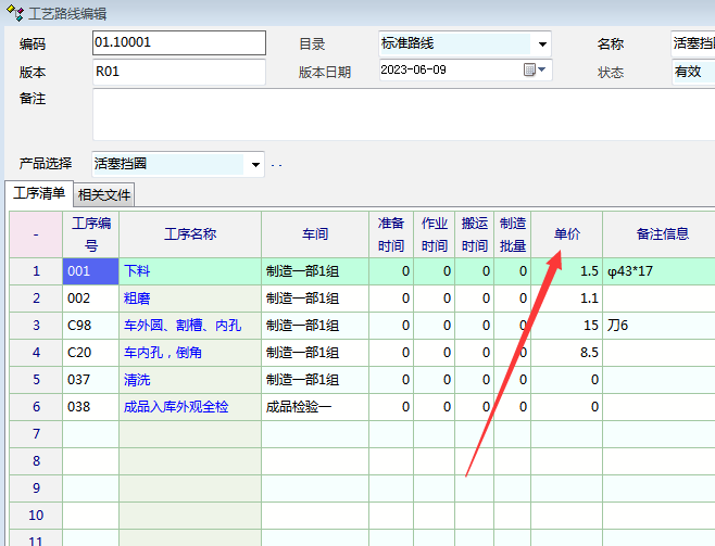 2,工艺路线里面添加单价----同步“产出单”里面的单价
