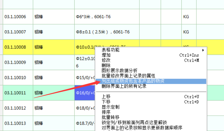 产品资料-----右键“列出组成物资包含本产品的物资”---显示的逆向组成里面,每个产品,名称后面,再添加上规格型号,便于识别是哪个产品(产品多,名称一样的,只有编码,名称,辨认不到是哪个产品)