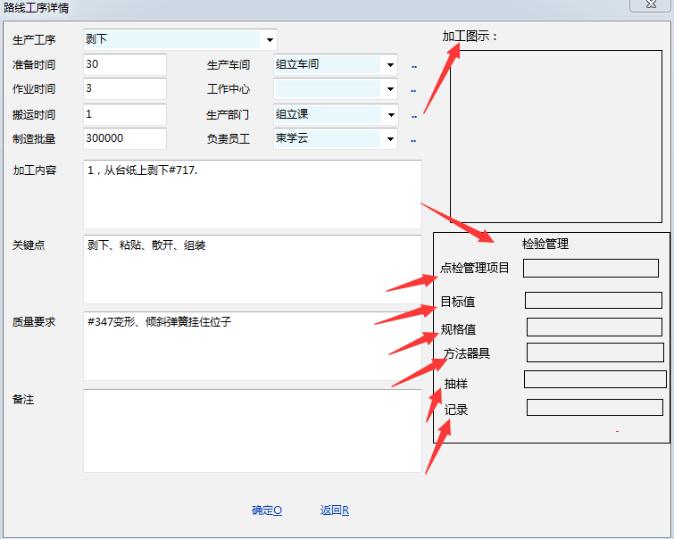 检验记录里面的项目直接自动调用“工艺路线”里面制定的检验管理里面的所有项目,判定标准等