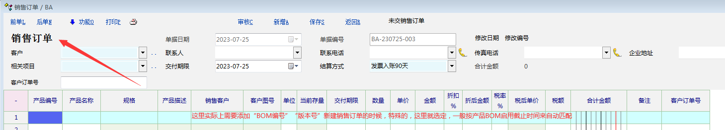 销售订单里面实际上需要添加这个产品使用的是哪个BOM 版本(系统按产品BOM启用截止时间,自动匹配),特殊需求的,可以选择这个产品的BOM版本对应。