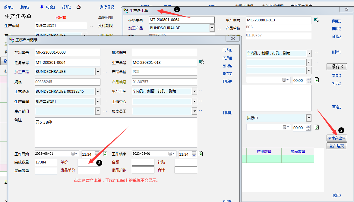 原创_(急)从生产派工单里面创建产出单,单价带不出_产供销