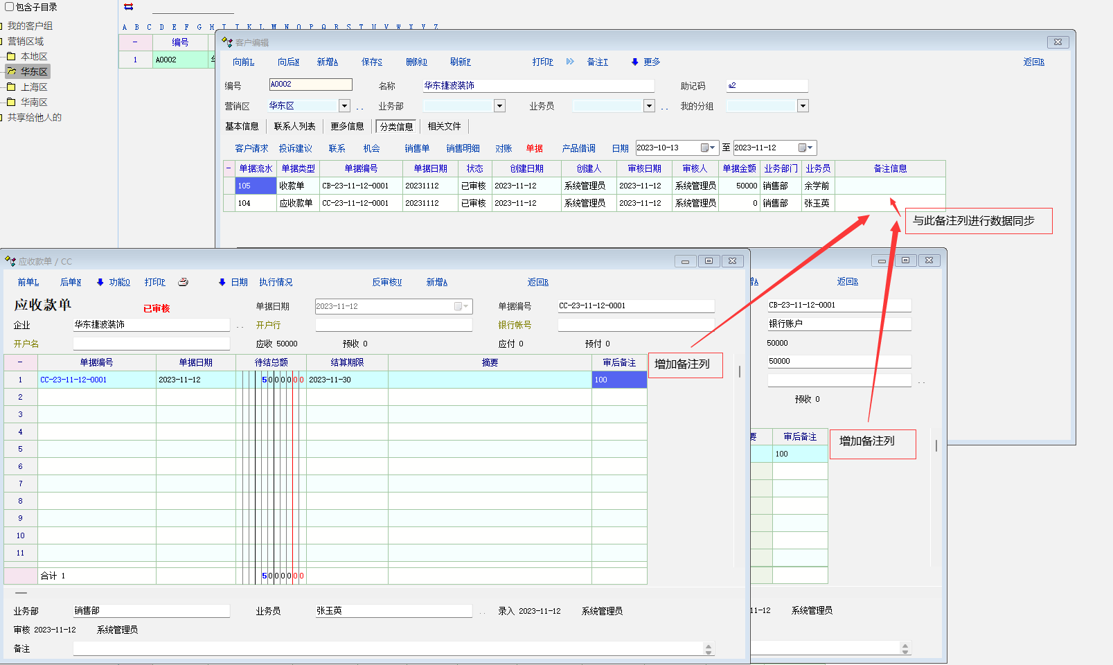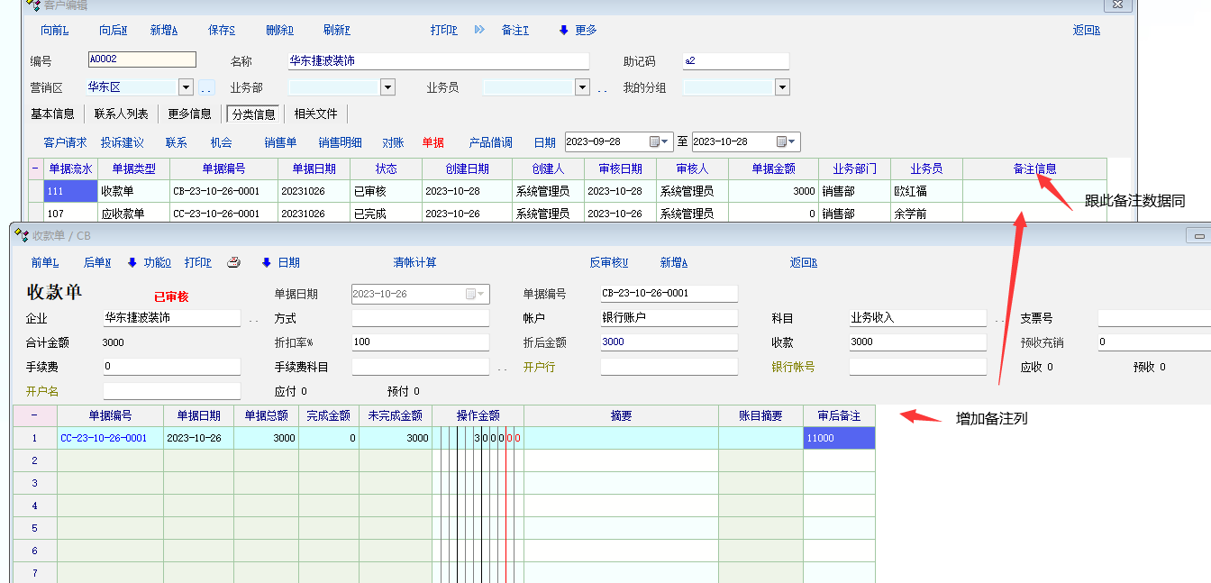 现在的审后备注无法同步到客户的分类信息中的单据备注列