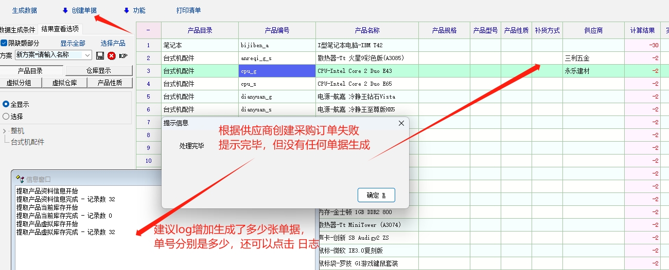 求助_根据供应商创建采购订单失败 提示完毕,但没有任何单据生成_产供销