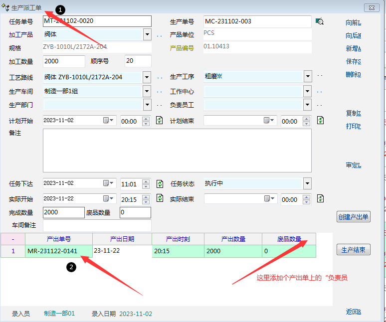 原创_生产派工单-----下面的产出记录上添加个“负责员工”_产供销