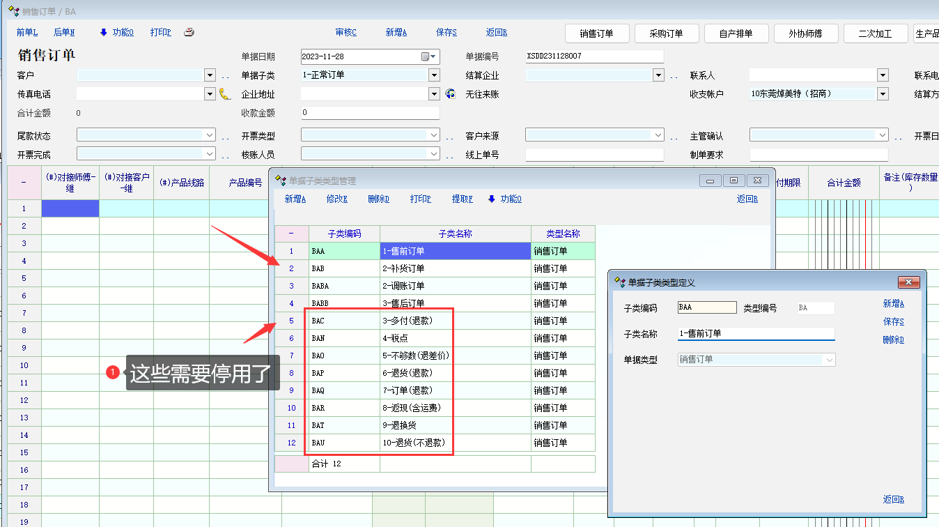 推荐_建议 单据子类型增加停用选项, 停用的不出现在下拉框中_产供销