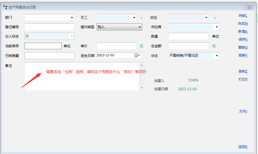 原创_生产用具---进出记录界面添加“公司”---仓库---库位项目_产供销