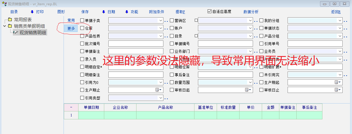 求助_列表更多参数太多无法隐藏,导致常用窗口无法缩小,希望改进!_产供销