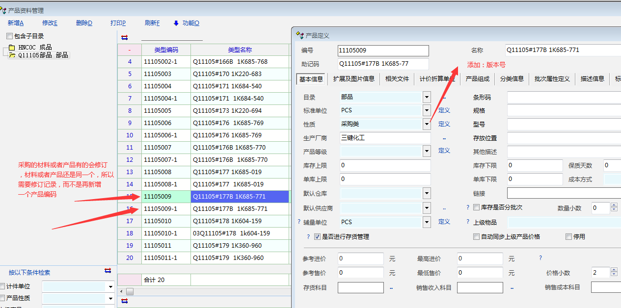 原创_产品资料里面添加版本号---用于采购经常会图钉的产品--并添加产品修订记录日志_产供销
