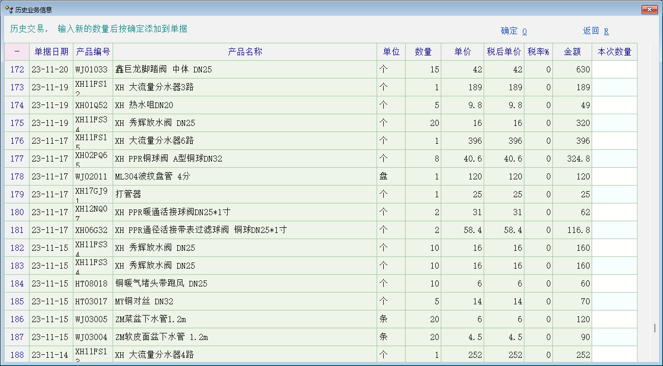 希望可以在这个业务信息上添加一个搜索框,用来搜索客户的某一个产品的历史信息,比如搜索“铜对丝”后,只列出关于铜对丝的历史信息